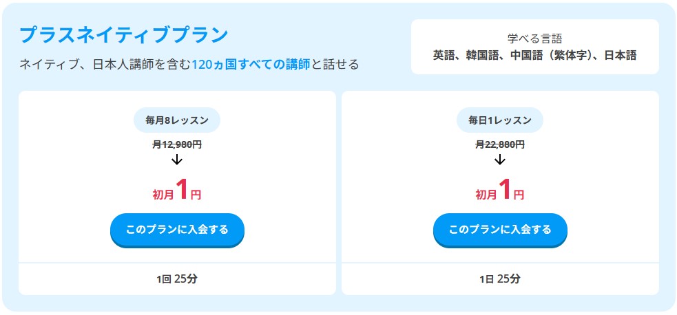 ネイティブキャンプには、月額2,980円の格安プラン「チョコっとキャンプ」もあります。詳しくは下記の記事でまとめています。(5,000円Amazonギフトキャンペーンの対象外プランです)